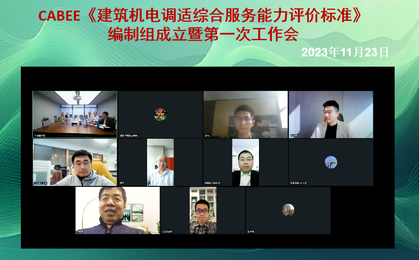 2023年11月23日,中國建筑科學研究院有限公司牽頭編制的中國建筑節能協會團體標準《建筑機電調適綜合服務能力評價標準》編制組成立暨第一次工作會在線上召開。中國建筑節能協會李德英副會長、臧凌云高級工程師,中國建筑科學研究院有限公司深圳分公司何春凱副總經理,中國建筑節能協會調適運維專委會逄秀鋒秘書長,《建筑機電調適綜合服務能力評價標準》編委共15位專家參加了會議。標準編制組成立會議由中國建筑節能協會標準化管理辦公室臧凌云高級工程師主持。中國建筑節能協會李德英副會長致辭,安排部署團體標準 《建筑機電調適綜合服務能力評價標準》 編制啟動的相關要求。